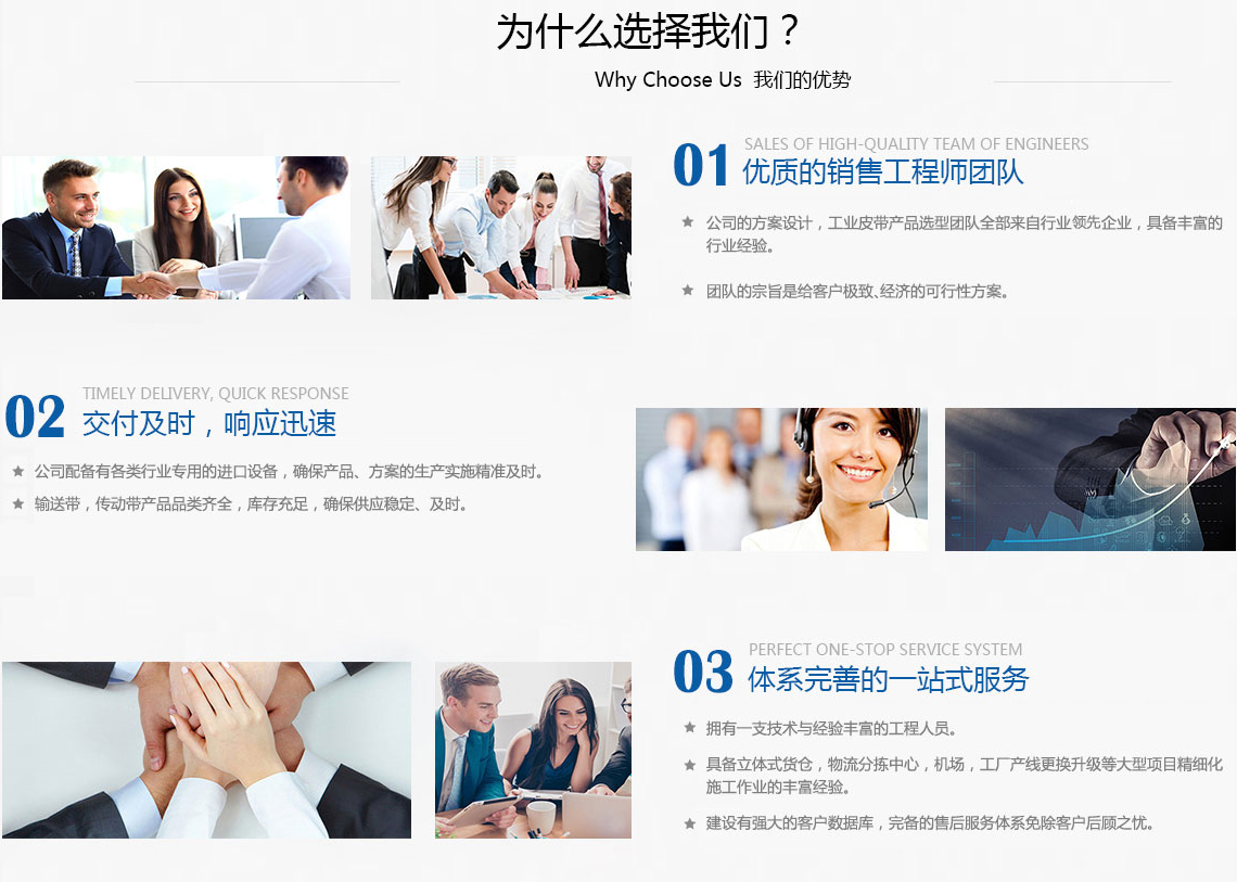 東孚傳動系統(上海)有限公司 多年來專注于為客戶提供工業皮帶的設計、選型、生產和維護;生產車間全套引進瑞士,德國和意大利開裁接駁設備,并提供西格林、哈巴西、麥威特、等全球優質品牌工業皮帶及傳動系統周邊產品的銷售和服務。    東孚傳動系統(上海)有限公司集合國際國內優質資源,為客戶量身定制傳動系統一體化解決方案;我們的產品覆蓋太陽能光伏,汽車,電子,印刷,包裝,電池,木業,紡織,物流,食品,鋼鐵,玻璃等行業;在產品上我們不斷推陳出新,提高產品性能,提高專業水準,解決客戶各種難題。    東孚公司擁有完整、科學的質量管理體系,以“誠實守信——精益求精”的經營理念和過硬···